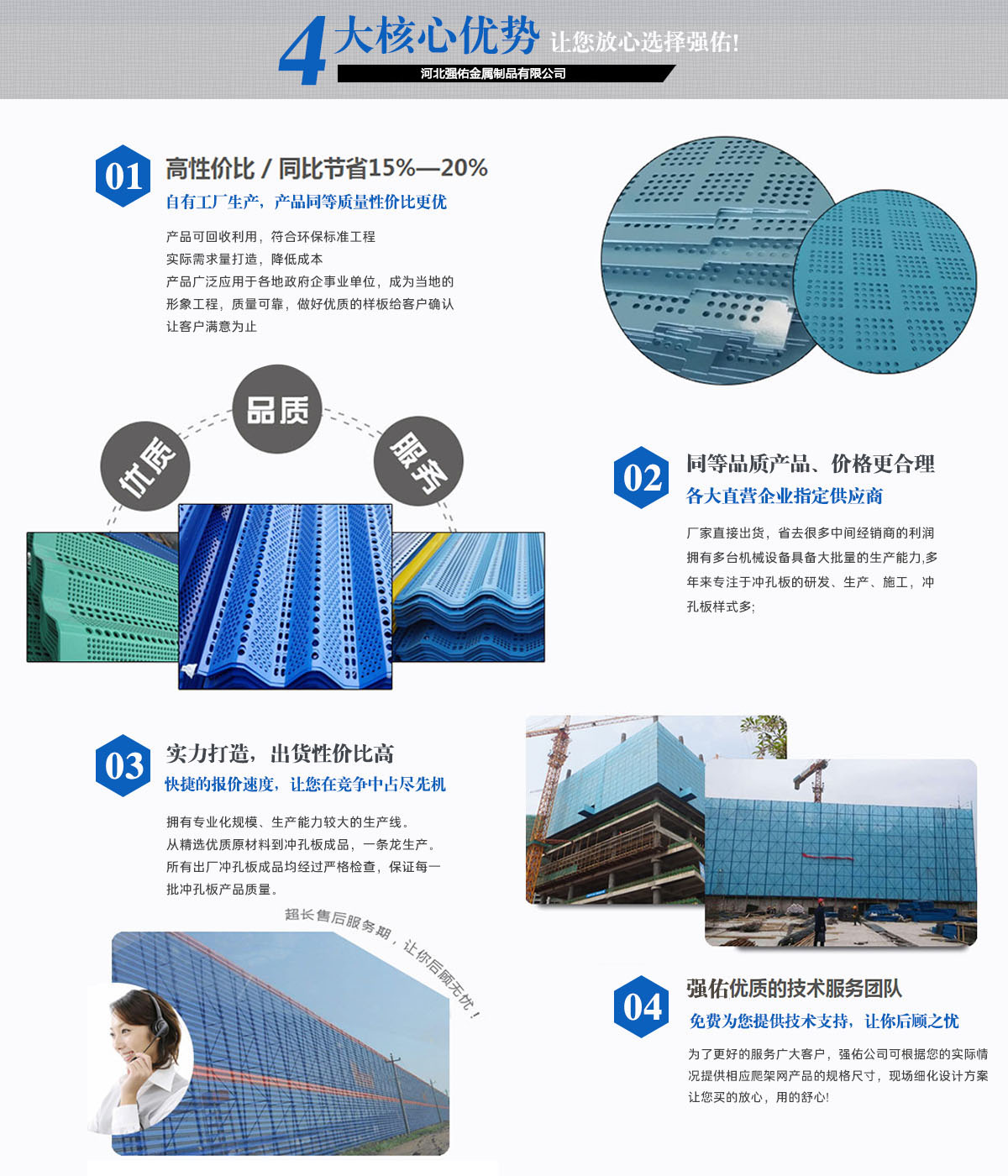 公司擁有機器設備,在鋼板網,沖孔板,爬架網,防風抑塵網研發和生產上積累了豐富的經驗,并多次派技術人員到各地施工單位結合實際情況為客戶設計生產合理的鋼板網,沖孔板,爬架網,防風抑塵網產品。 面對日益激烈的市場競爭,公司轉變觀念,調整戰略,將本土優勢轉化為先求生存,后求發展的核心競爭力。